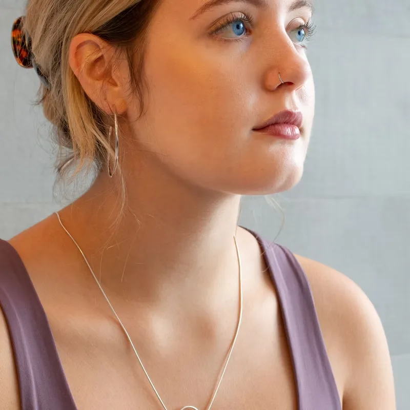 The Moonlight Necklace is born to shine a light on movement in stillness for you. It’s a jewelry piece that invites you to concentrate on peace and happiness by calming down the senses with the continuous circular movement of the ring. In a meeting or during meditation, this pendant allows you to come back to your center, to have peace of mind for your spiritual development.