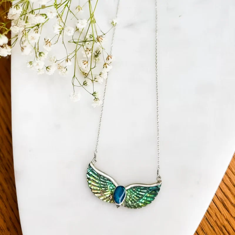 - Material: Sterling Silver, Blue Opal Gemstone and Abalone Shell.