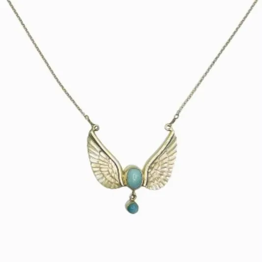 Sterling Silver & Larimar Gemstone Angel Wings Necklace