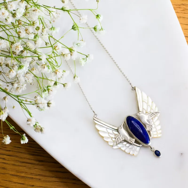 - Material: Sterling Silver, Lapis Lazuli Gemstone and White Shell