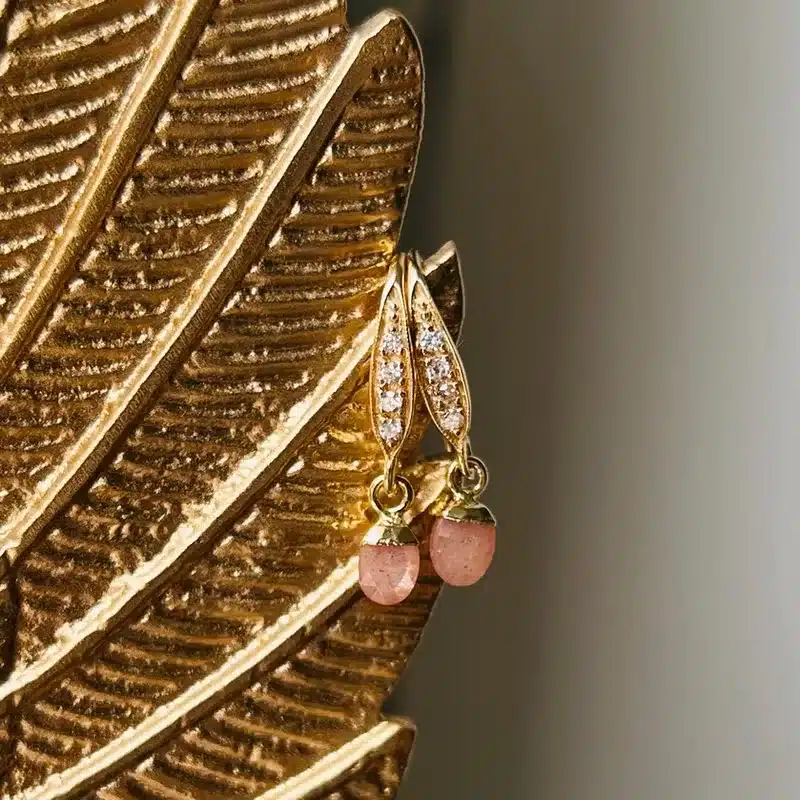 - Stone: Semi Precious Rose Quartz and Cubic Zirconia